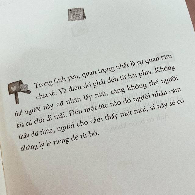 Trong tình yêu, đừng hiểu thay cảm xúc cho người khác quá nhiều. Hãy để tâm đến cảm xúc của chính mình. Mình đang vui hay buồn. Mình hạnh phúc hay khổ tâm. Mình đã đủ đau chưa? Đau đủ rồi thì mình buông đi.